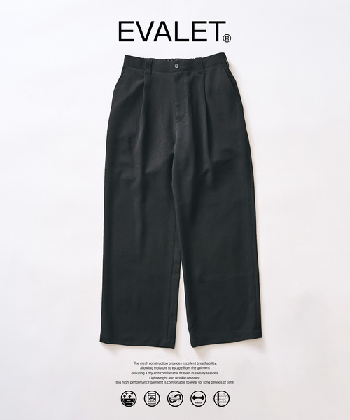 吸水速乾性に優れたEVALET素材を使用した、メッシュ仕様のワイドパンツ。 高い通気性とドライなタッチで、暑い季節でも快適な穿き心地を実現します。 ゆとりのあるワイドシルエットが、リラックス感のある大人のスタイルを演出。 素材の上品な表情により、ラフになりすぎずきれいめにも対応します。 [C.S](コンビネートシステム)対応で、同シリーズとの組み合わせも楽しめる一本です。 -EVALET / C.S. Coordinated System- 26010312500010 [C.S] EVALET MESH セットアップ 26010312503010 [C.S] EVALET MESH Wジャケット 26010312504010 [C.S] EVALET MESH カーディガンジャケット 26010312509010 [C.S] EVALET MESH Wワイドセットアップ 26030312506010 [C.S] EVALET MESH ワイドパンツ 26030312511010 [C.S] EVALET MESH 2タックパンツ 26030312519010 [C.S] EVALET MESH スリムパンツ 本体:手洗い可能