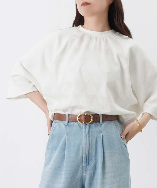2026 Spring & Summer 【ドットジャガードの立体感が魅力。ドットジャガード裏毛5分袖プルオーバー】 ◆Design 表情のあるドットジャガードが、さりげなく華やかさを添える一枚。 柔らかな裏毛素材でラフに着られつつ、 ショート丈でバランス良く着こなせます。 ドルマン×ラグランのゆったりシルエットが、こなれた印象をプラス。 ◆Fabric ・立体感のあるジャガード裏毛素材。 柔らかさと軽さを兼ね揃えた着心地。 ◆color ・オフホワイト、グレーの2色展開です。 ◆Styling ・ワイドデニム、バレエシューズと合わせた大人カジュアルスタイルに。 ・サテンナロースカートとポインテッドトゥシューズを合わせたキレイめスタイルに。 ・カラーパンツと合わせた春っぽい軽やかなスタイルに。 -------------------------------- 生地の厚さ:中間 透け感:オフホワイトややあり、グレー別布部分ややあり 伸縮性:あり 光沢感:なし 裏地:なし 洗濯:手洗い可 -------------------------------- 【お買い物をよりお楽しみいただくために】 〇商品のお気に入り登録 完売カラーの再入荷や、完売間近の通知、セールの通知を受けることができます。 〇ブランドのお気に入り登録 新商品や再入荷など、いち早くブランドのお得な情報を受け取ることができます。 【♡をクリック!ご登録お願いします!】