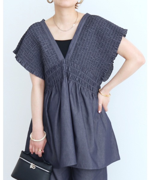 ★セットアップ可能アイテム★このアイテムは、こちらのデニムパンツとセットアップでご着用出来ます! イージーデニムパンツ 品番:y2880 こちらで検索してね♪ ■Point 大人かわいいギャザーデザインが魅力!キレイ見せデニムチュニック。 アンダーバストからゆったりとしたAラインのシルエットが 体型カバーしながら、しなやかな雰囲気で女性らしさを演出♥ ■Detail 首元はVネックデザインでお顔回りがスッキリ見せ◎ 腰周り、お尻周りも隠れるチュニック丈がうれしいポイント。 しっかりしたデニムの生地ながら、薄手でやわらかく軽い着心地。 ■Coordinate お手持ちのボトムスと合わせて大人カジュアルなスタイリングや セットアップにあるデニムパンツもご紹介しています♪ ランチパーティやちょっとしたお出かけ、カジュアルな集まりにも最適です! 【reca / レカ】 新作/お得情報はInstagram ZOZOTOWNアカウントからチェック! ↓ 【@reca.zozotown】 ※サイズは現物をスタッフが平置き採寸したものになります。 ※モデル着用写真は撮影環境により、多少実際のカラーと異なる場合がございます。 ※生産時期により若干の色ブレやサイズの変動が生じる場合がございます。 生地の素材や種類によってシワになりやすいもの、または同じ素材でも製造時期によって異なる場合がございます。予めご了承くださいますようお願いいたします。 ※ご注文いただいた予約商品のお届け時期の確認は、注文履歴ページより行えます。