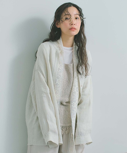 軽くて爽やかな一枚 夏場の羽織としても活躍するバンドカラーシャツ ーーー 【素材】 上品な光沢感としなやかで柔らかなフレンチリネン100%を使用。 さらりとした肌触りで、暖かくなるこれからの時期にぴったりな素材感です。 【デザイン】 爽やかでクリアなカラーリングが春らしいバンドカラーシャツ。 バックにギャザーを入れることで程よいフレア感が生まれ、軽やかな見え感がこれからの時期にぴったりな一着です。 襟ぐりは詰まりすぎていないバンドカラーで、抜け感のある首元の開きが特徴。 釦を外せば羽織としても使えるので、真夏の紫外線や冷房対策にも活躍します。 ーーー 【スタイリング】 カジュアルにデニムやチノパンなどのワイドパンツ合わせはもちろん、トレンド感のあるレースパンツ合わせもおすすめ。 リラックス感のあるイージーパンツや、同シリーズのリネンアイテムとのスタイリングも素敵です。