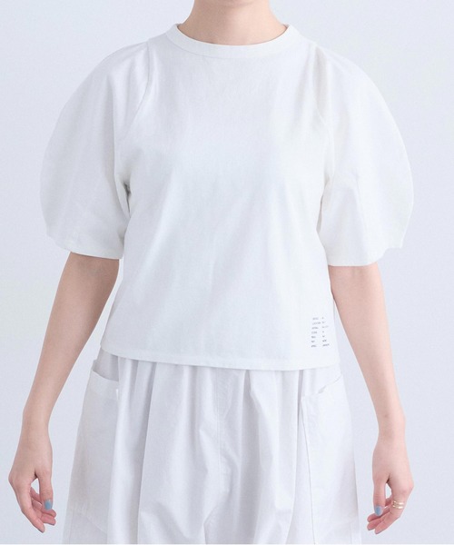 綿100%のヘビーウェイト天竺を使った、カジュアルで頼もしい一枚。 独特の丸い型紙から生まれる“変形パフ袖”が、ふんわりとしたフォルムをつくり、肩幅を狭く華奢に見せてくれます。 短丈でバランスが取りやすく、どんなボトムとも好相性。 左裾には MOONY のコンセプトプリント入り。 シンプルなのに、日常を少し可愛くするディテールが詰まったトップスです。 カラー展開:ホワイト、サックス、ブラック 【素材の特性、お取り扱いの注意】 この製品は素材の特性上洗濯により、多少の伸縮、斜行の現象が発生することがありますので、洗濯後、形を整えてから日陰で平干ししてください。 タンブラー乾燥はお避け下さい。塩素系漂白剤はご使用にならないで下さい。 お取り扱い注意(プリント製品)この製品は特殊加工品です。永久的なものではなく、もまれたり、擦られたりすると脱落しやすいのでご注意下さい。 また汗や雨で濡れた際、色落ちし他の衣料、小物に移染することがあります。 プリント部分へのアイロンは必ず避けて下さい。 IAMI IN FACT... アイアムアイインファクト 無意識の意識 I AM Iが探求するのは 無意識と意識のあいだにある“美しさ” 計算された整合ではなく ふと生まれる間や欠け、予期せぬ裂け目 それは理性を超えて立ち上がるアートであり 「私は私」という存在の宣言、 I AM Iの根源にある思想です ※着用商品はサンプルです。実際の商品と仕様、加工、サイズが若干異なる場合がございます。 ※光の関係で実物の商品の色味とは若干異なる場合がございます。 実際に近い色味は詳細画像をご参照下さい。 ※取り扱いの注意については取り扱い表示をよくご確認の上、着用をお願いいたします。
