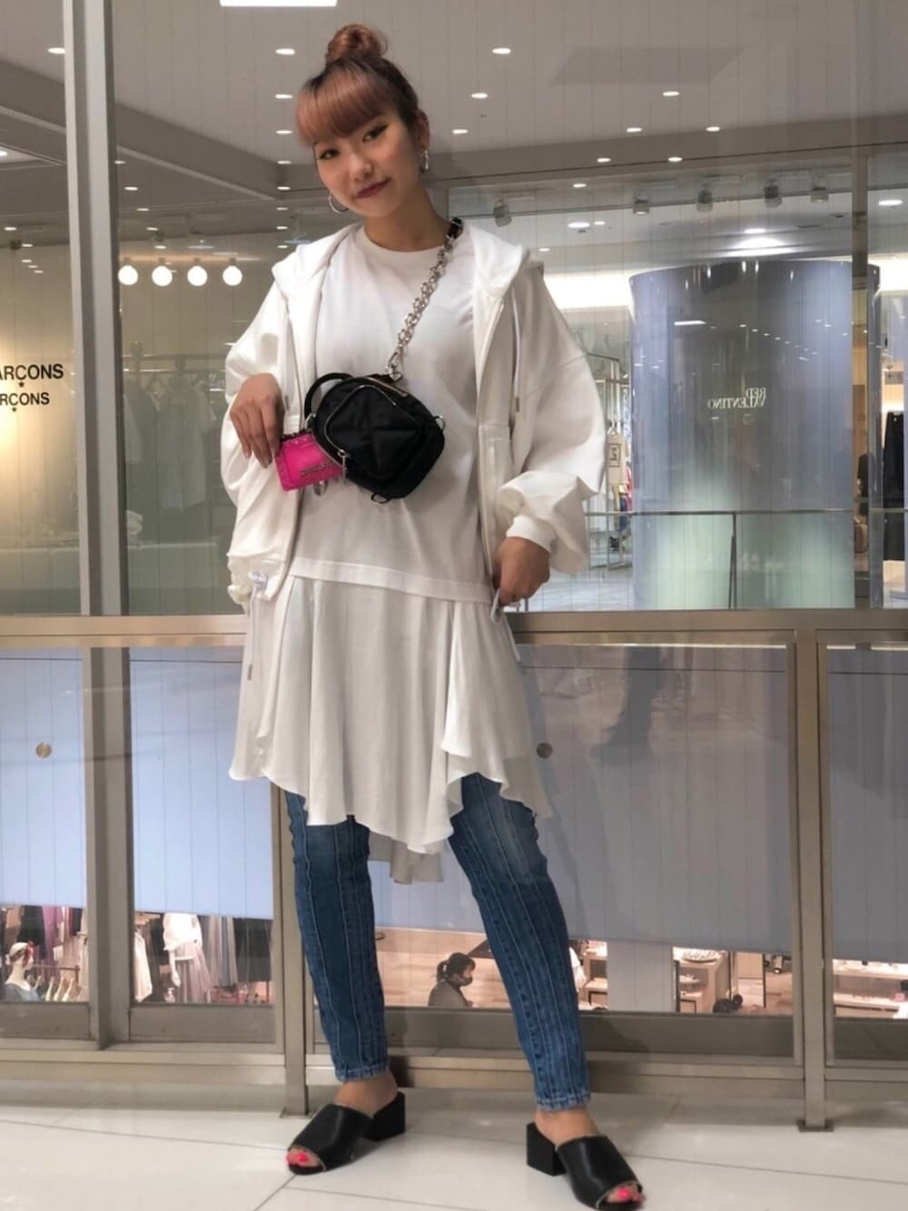 ドルマンスリーブとビッグシルエットが可愛いパーカーはこの時期持ってると便利な人気のアイテムです カラーはホワイトとブラック、ラベンダーの3色👼🏽💐 バックのメタリックロゴもポイントです