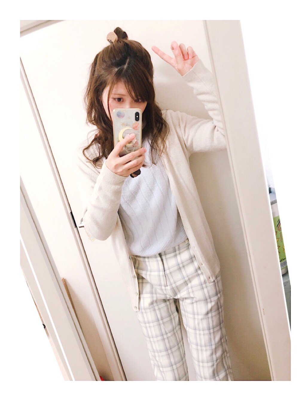 すっきりホワイトコーデ。 かじったチョコモチーフヘアアクセに ちゅぅーもーーく。