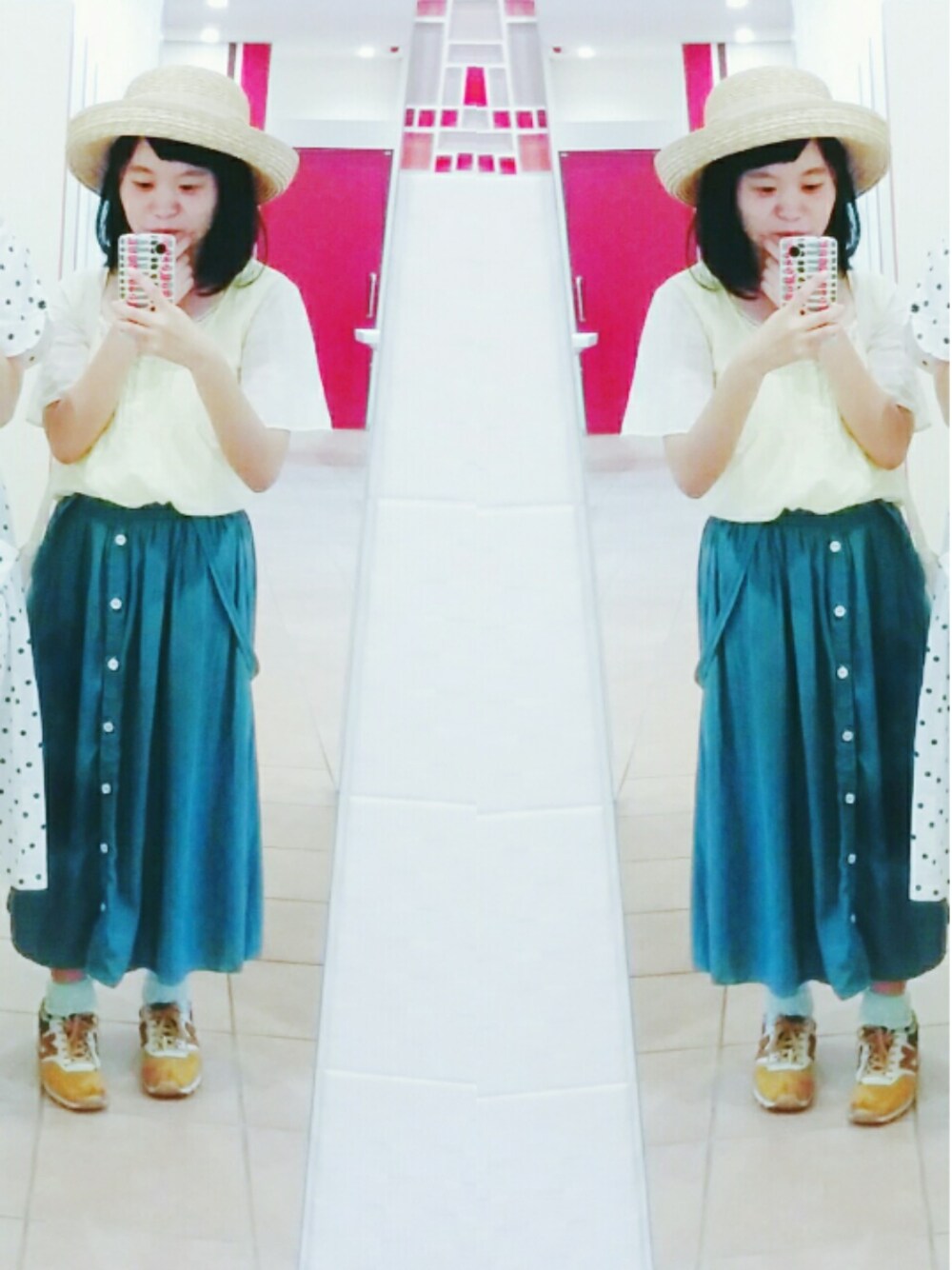 倉敷にでかけた日。 シャツ、無印 キャミソール、無印 スカート、chouett 麦わら帽子、salt シューズ、new balance