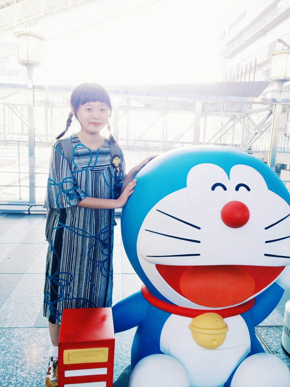 ドラえもんにあった! ワンピース、古着 シューズ、new balance リュック、無印良品 コサージュ、ハンドメイド