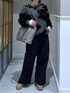 ニットはチュニック丈ですが、内側に少し織り込んで先端をパンツにインするとお腹周りはもたつかずに丈を短くすることができます!! パンツはシルエットがとても綺麗で身体のラインをまったく拾いません!! 色味は黒なのですが、少しネイビーよりな感じなので柔らかい印象にしてくれます!! ______________________ リアルバイアイテムやコーディネートなど更新していきますのでよかったらフォローしてくださると嬉しいです! いつきのインスタグラムは💁♀️ @itkey_75