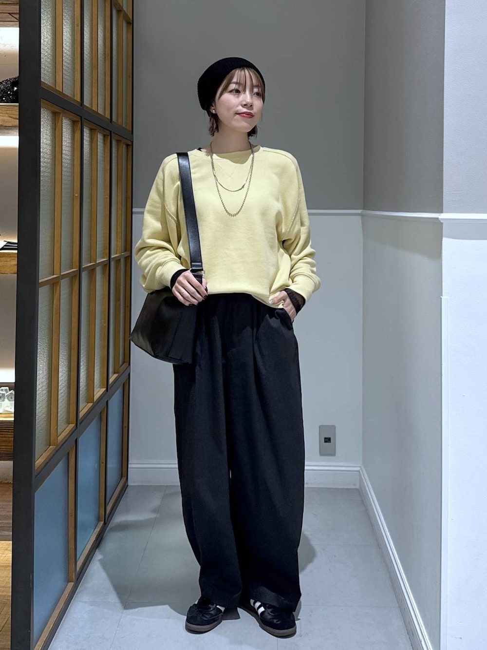 リアルバイ店頭コーデ!! イエロー×チャコールの組み合わせで柔らかい印象に!! 小物は黒で締め色に使ってます〜! トップスは肩の落ち感があるので、肩幅が気になる方もスッキリ着用できるおすすめのアイテムです◎ ______________________ リアルバイアイテムやコーディネートなど更新していきますのでよかったらフォローしてくださると嬉しいです! いつきのインスタグラムは💁♀️ @itkey_75