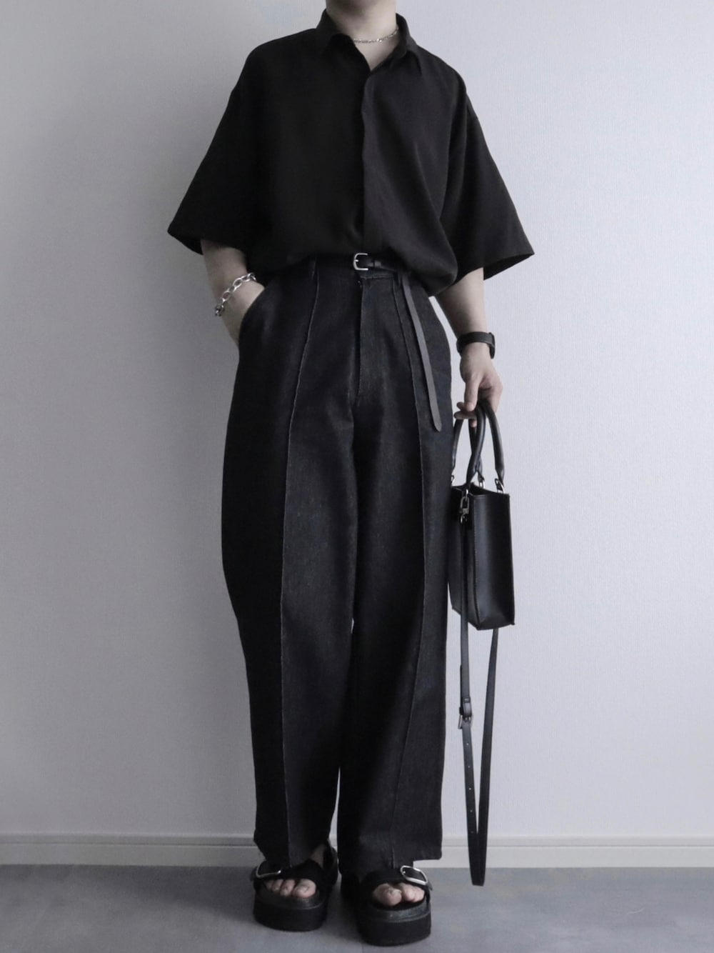 見てくださってありがとうございます! -オールブラック×タックイン- きれいめの中にもデニムやサンダルで外すことで 全体のバランスが取れた オールブラックコーデになりました✌🏻 ____________________ 【Instagram】 @wear_itsuki ____________________