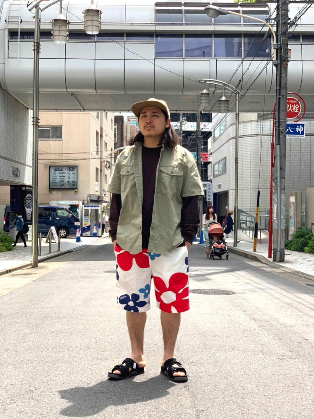 本日のオススメ 【JAMS】1964年にハワイで生まれ オリジナルのアートプリントは今も色褪せない魅力を放っています。 初めて見る人も何故か懐かしく安心できる柄。 そんな柄ショーツオススメです。 同素材も使用したシャツも入荷してます。 今回はちょっと無骨なアイテムと合わせてみました。