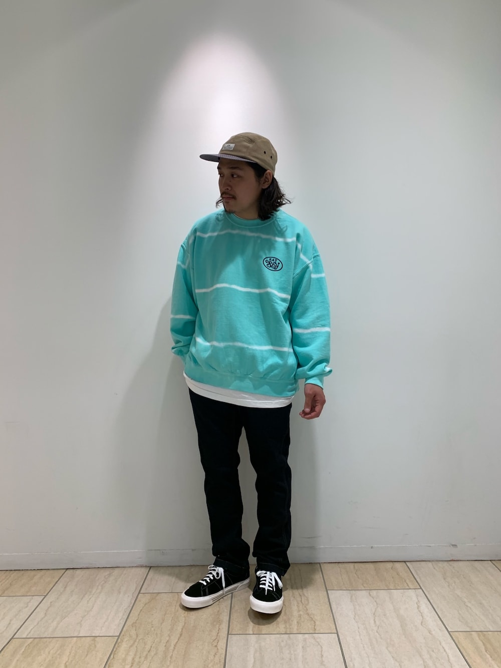 ボックスシルエットのスウェットをたるませて 細身のパンツと合わせればかっこいい