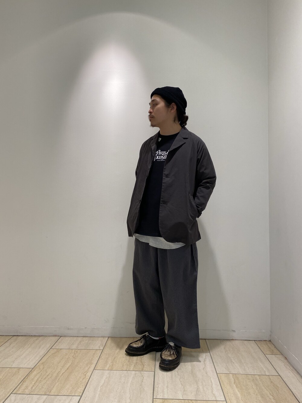 イメージを覆すモノトーンスタイル ラフなバルーンパンツもジャケットと合わせてしまえばかっちりします