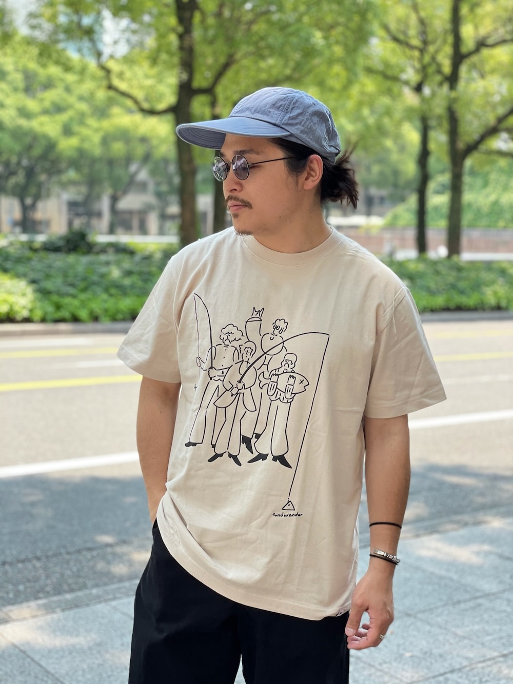 伊藤のTシャツ/カットソー「andwander × Yu nagaba/アンドワンダー×長場雄 BEAVER別注 fishing printed T by Yu」を使ったコーディネート