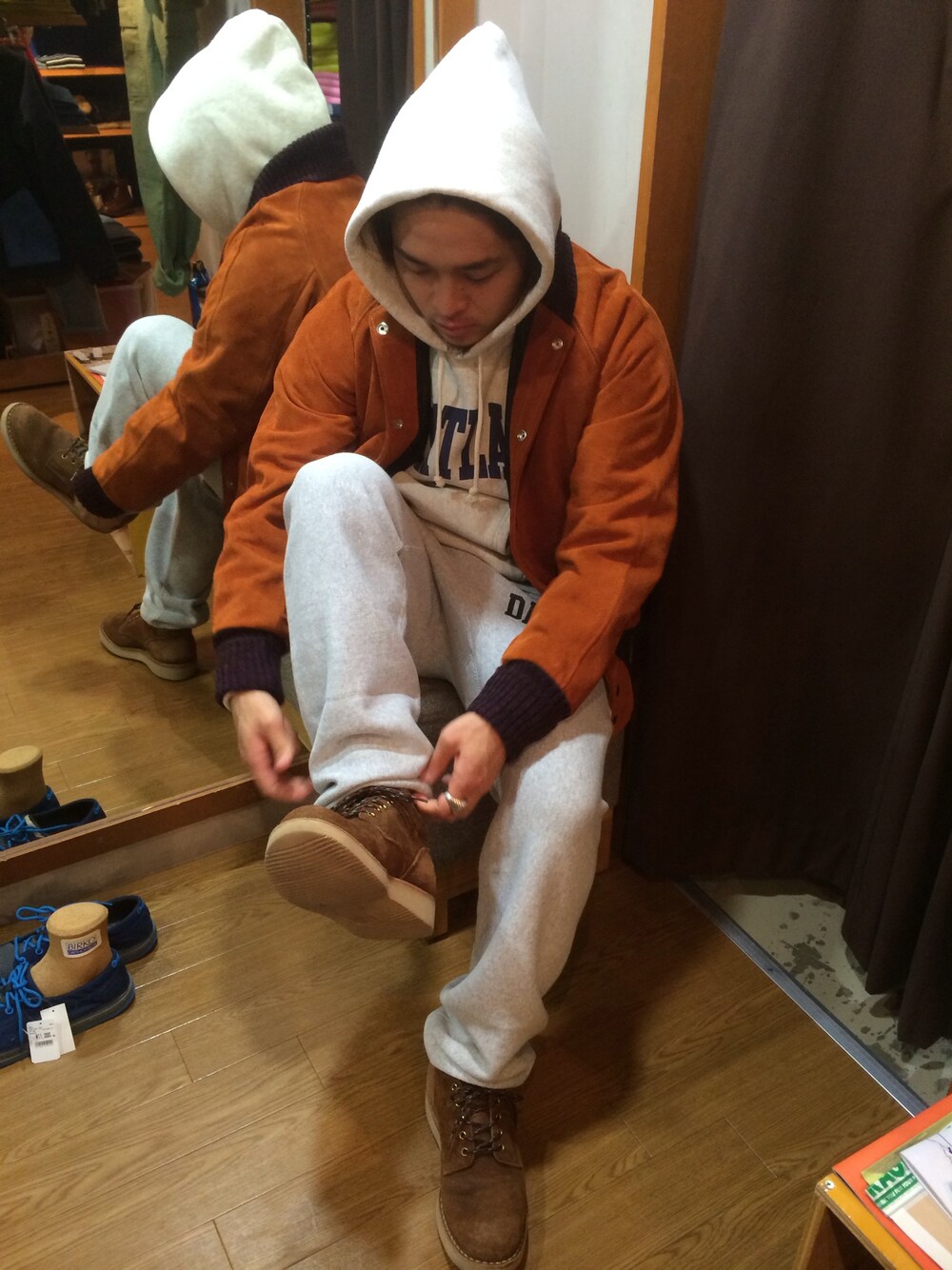 上下スウェットのリラックススタイル