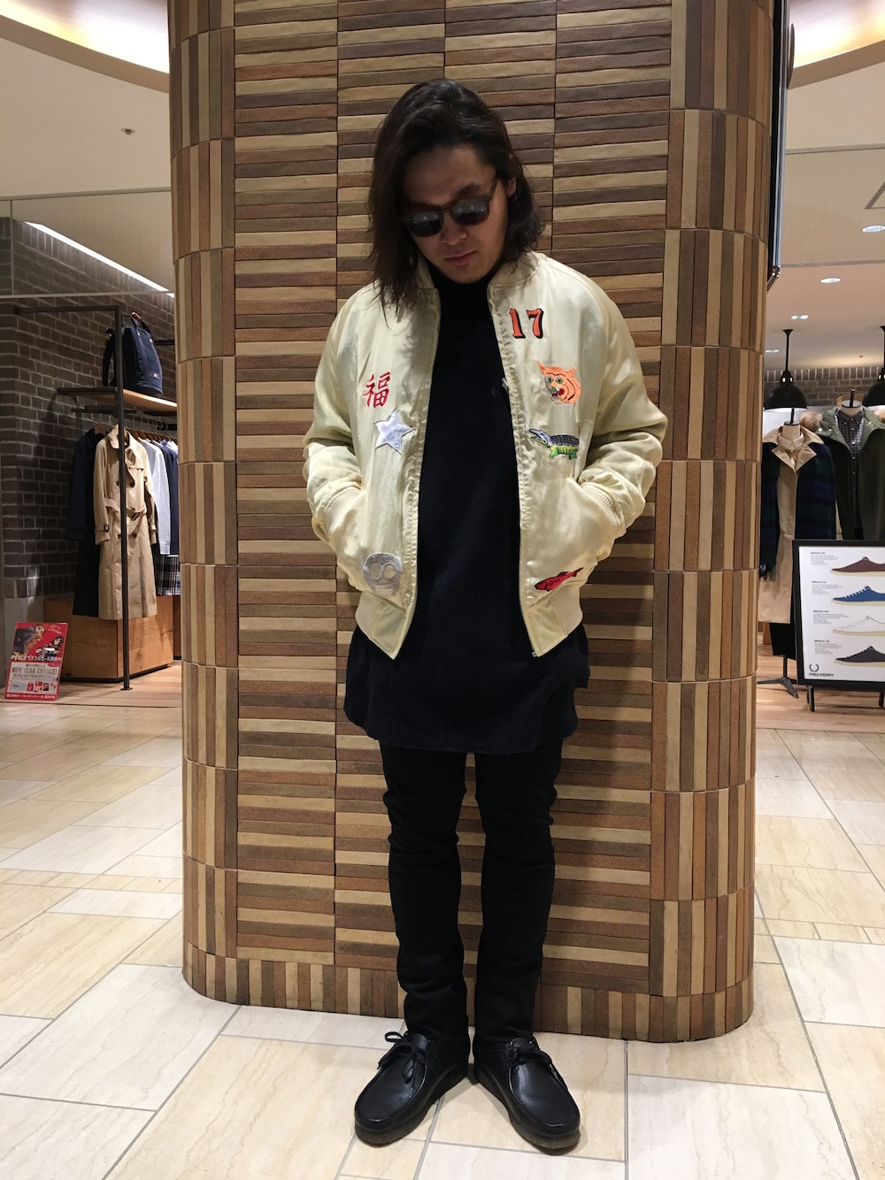 オールブラックにスカジャンです。 スキニーなんて履いてみたりして