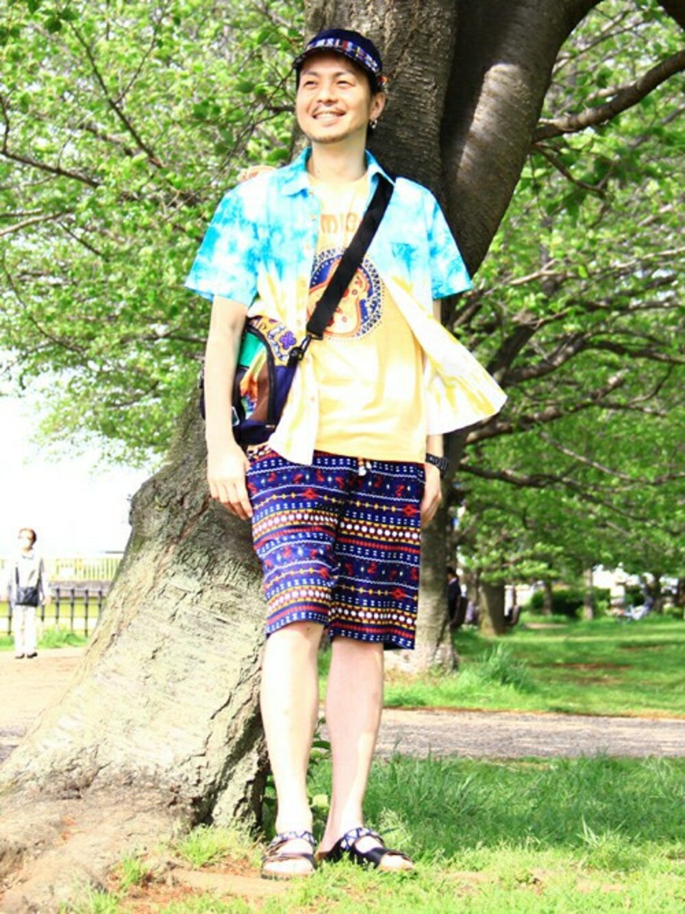 太陽の下に映えるタイダイ柄!柄モノのハーフパンツと合わせて気分はもう夏!