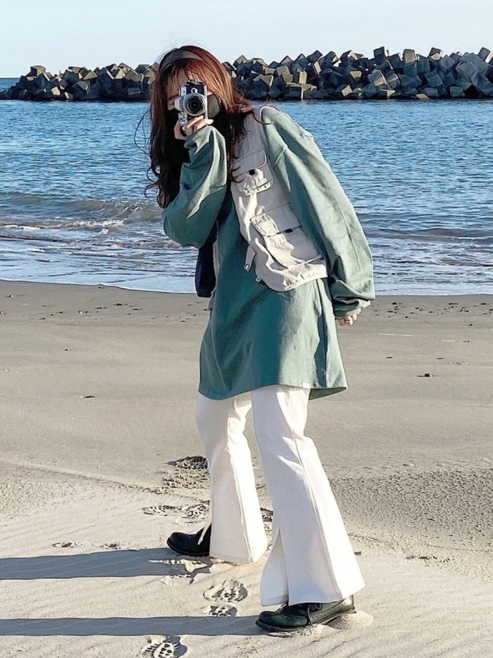 グリーンコーデとやら❕🔋🐊 yosukeの革靴とっても可愛くて履きやすいです🤦🏼✌🏻 頭のカチューシャは外しアイテム🤜🏻🤛🏻