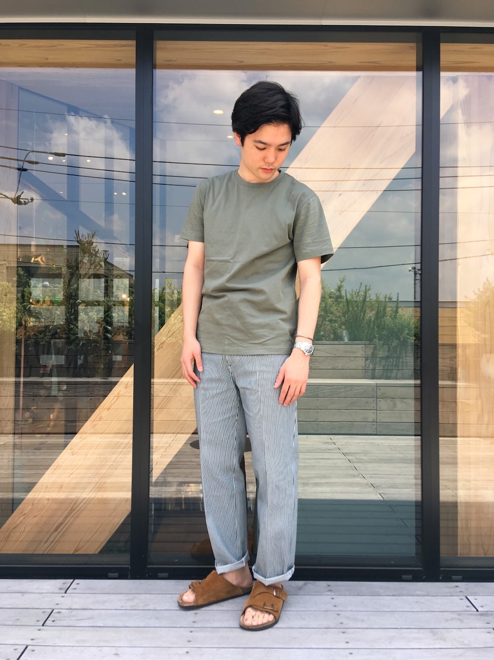 本日もお疲れ様でした。 オーガニックコットンを使った上質なTシャツが入荷して参りました。 なんと990円… ややゆったり着たかったので170cmの自分でLサイズを選びました! ヒッコリーパンツはカラーTシャツと合わせると上手くハマりますね!