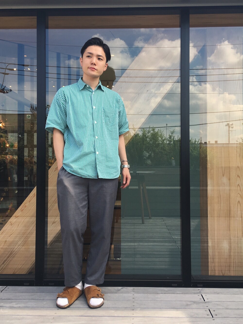 いとっちのシャツ/ブラウス「ギンガムチェックドロップ半袖レギュラーカラーシャツ ●」を使ったコーディネート