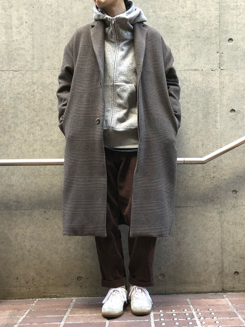 【coordinate】 「ポンチ裏起毛長袖フーディー」を使用したコーディネート。 これ1枚着て、ジップを1番上まで閉める、 後はバサッとゆったりしたコートを羽織る。 みたいな格好がしたかったこちら。