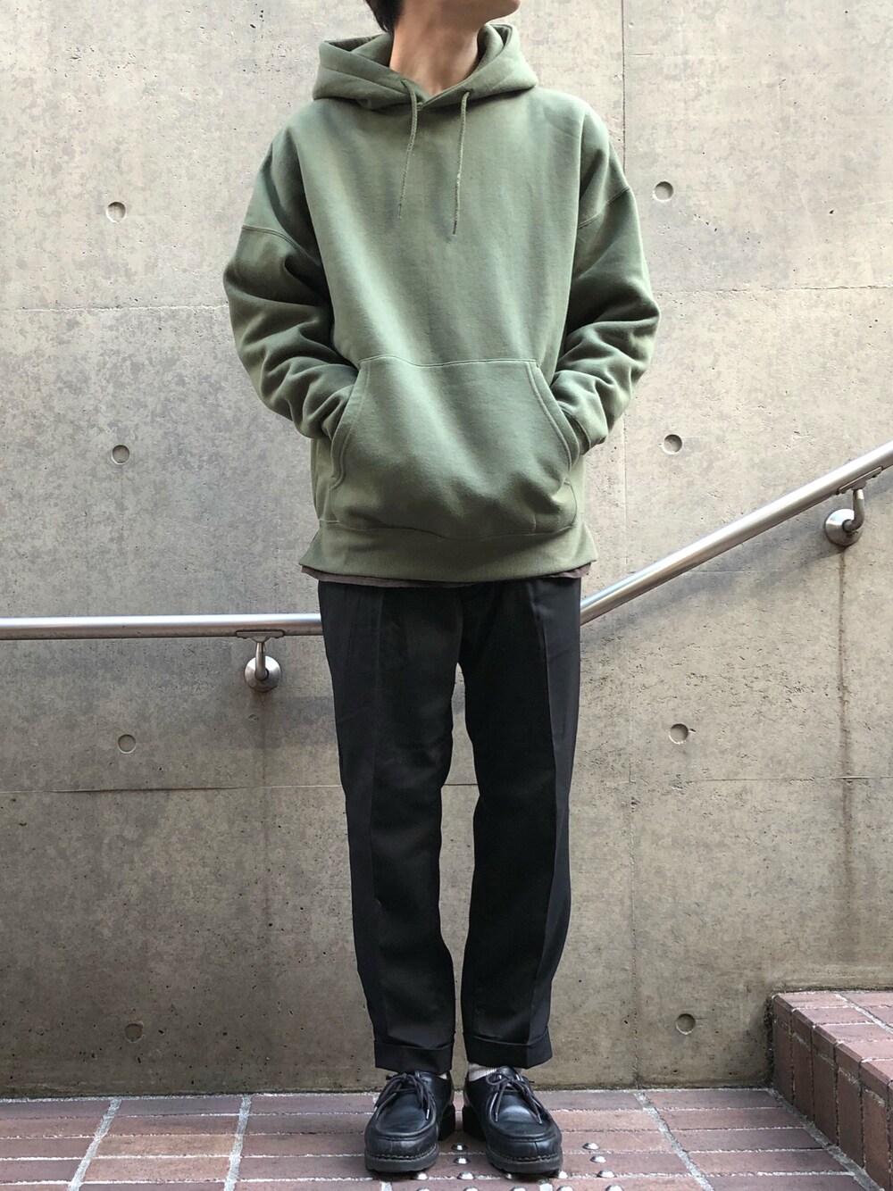 【koe】TC裏起毛脇スリットフーディを使用したコーディネート パーカーを主役にしたコーディネート。 間に茶色のカットソーを。 スリットのおかげでレイヤードが綺麗👏 柄のシャツなんか入れてあげても良さそうです👍 いつもご覧頂きありがとうございます🙏