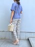 トレンド感があるシアー素材のブラウス! ハリ感が綺麗でアウトでも使える◎ 後ろのリボンが可愛いのがポイント! 久しぶりチェックのパンツを合わせて 夏っぽく綺麗めカジュアルにコーディネート