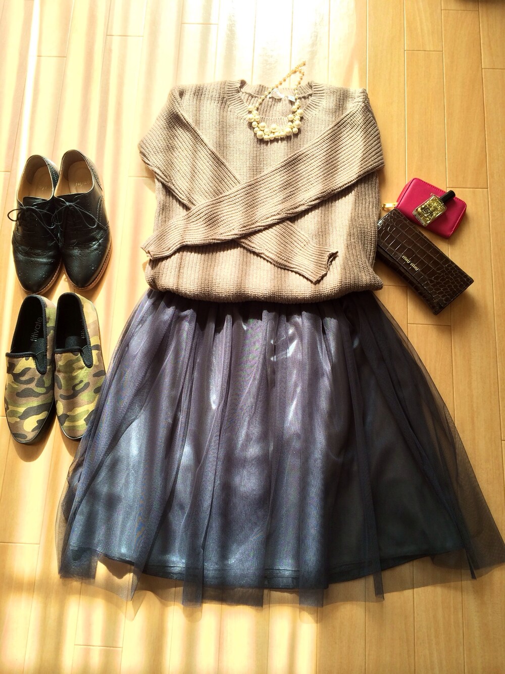 靴、悩みます。 はたまた生成りのコンバースか。 悩みます。 ニット…UNIQLO スカート…ブランド不明