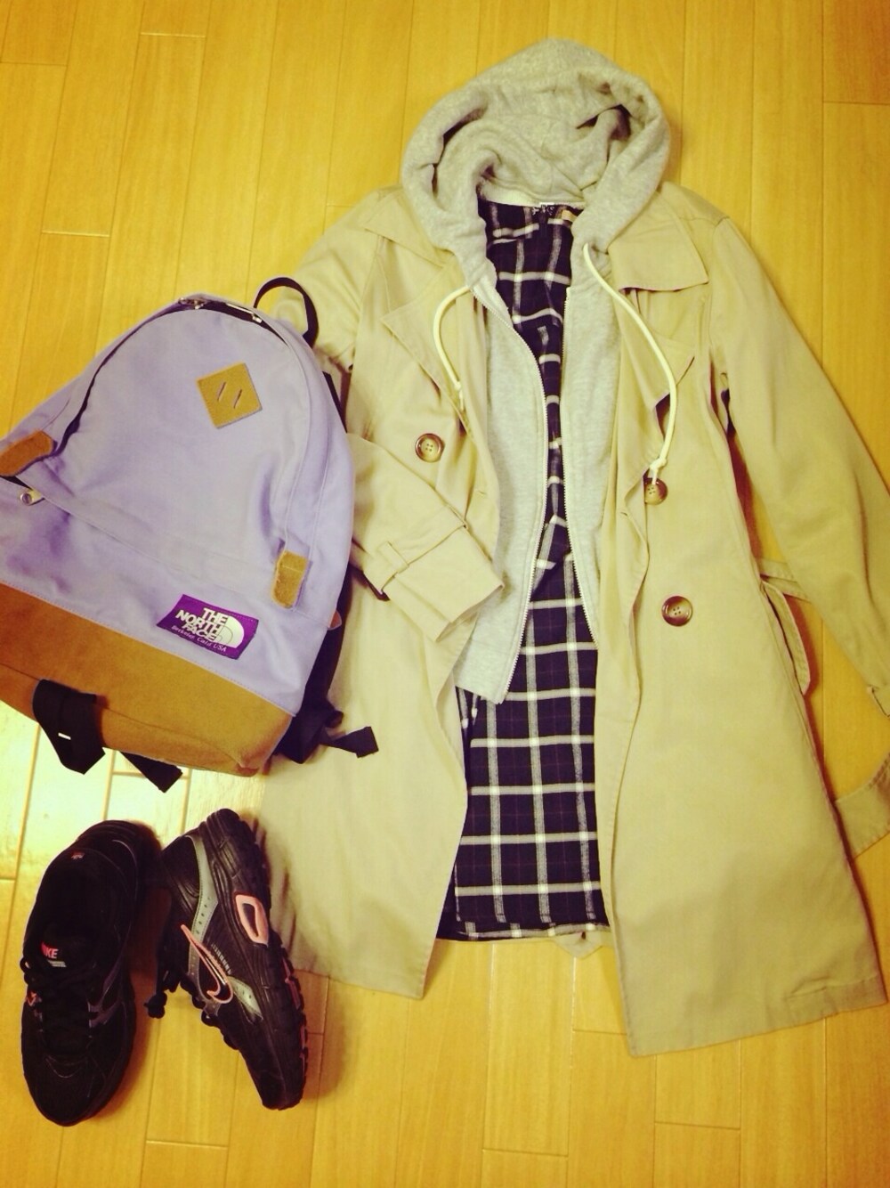 本気スニーカーだけど、女子らしく♡ トレンチ…stefis ワンピース…dazzlin スニーカー…NIKE