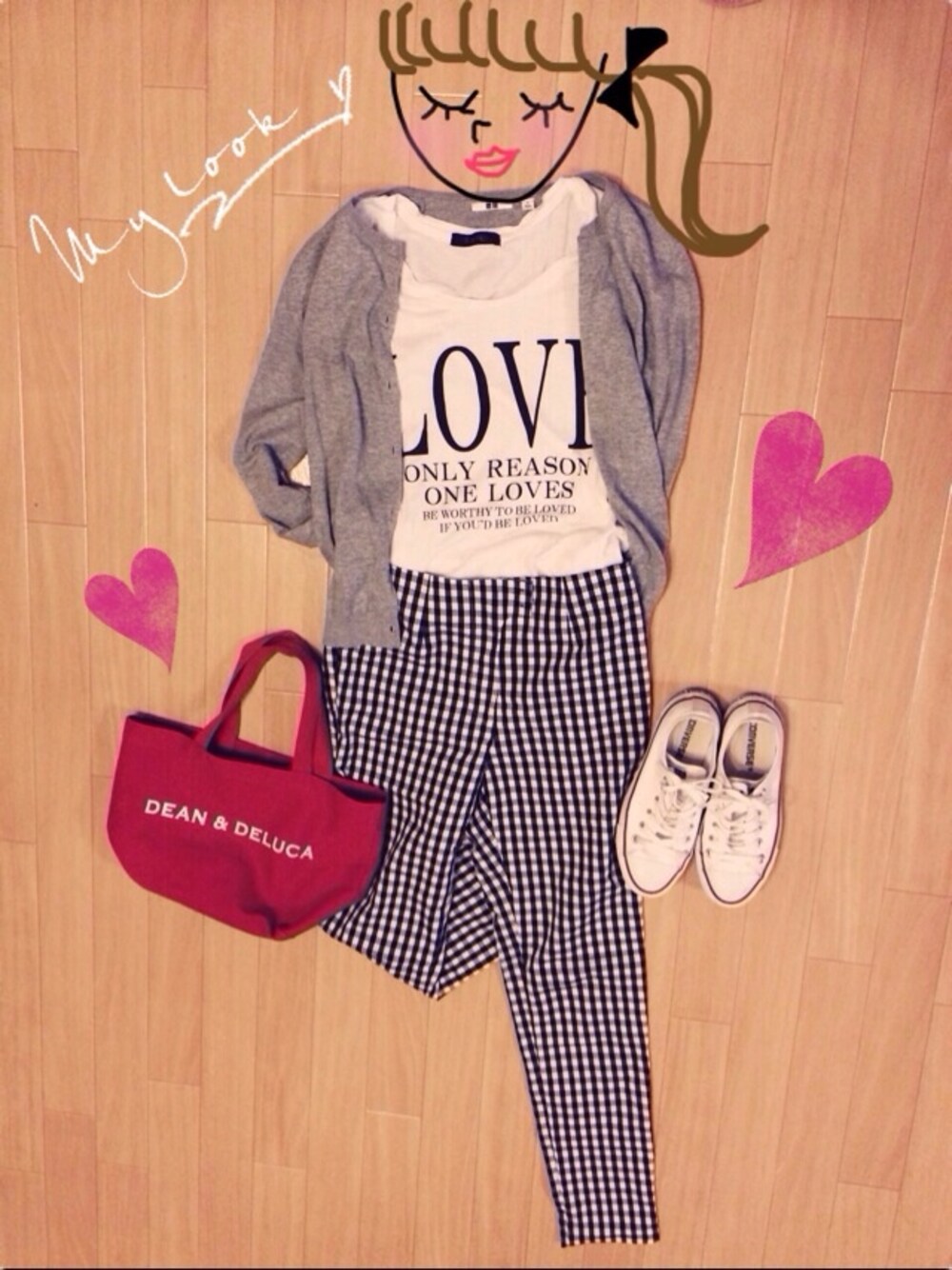 ギンガムチェックのパンツは細身でスッキリ見えるのがお気に入りです。 It's a beautiful day ♡ チェックパンツ…DHOLIC カーディガン…UNIQLO 靴…CONVERSE