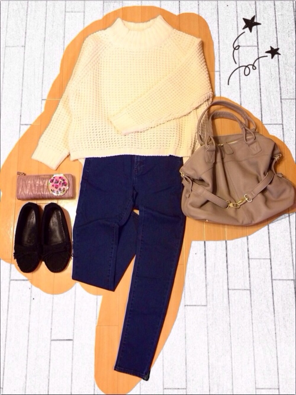 デニム…UNIQLO ニット…DHOLIC バッグ…ear×Beaure とってもプチプラです。 ユニクロ、DHOLIC、サイコー ♡