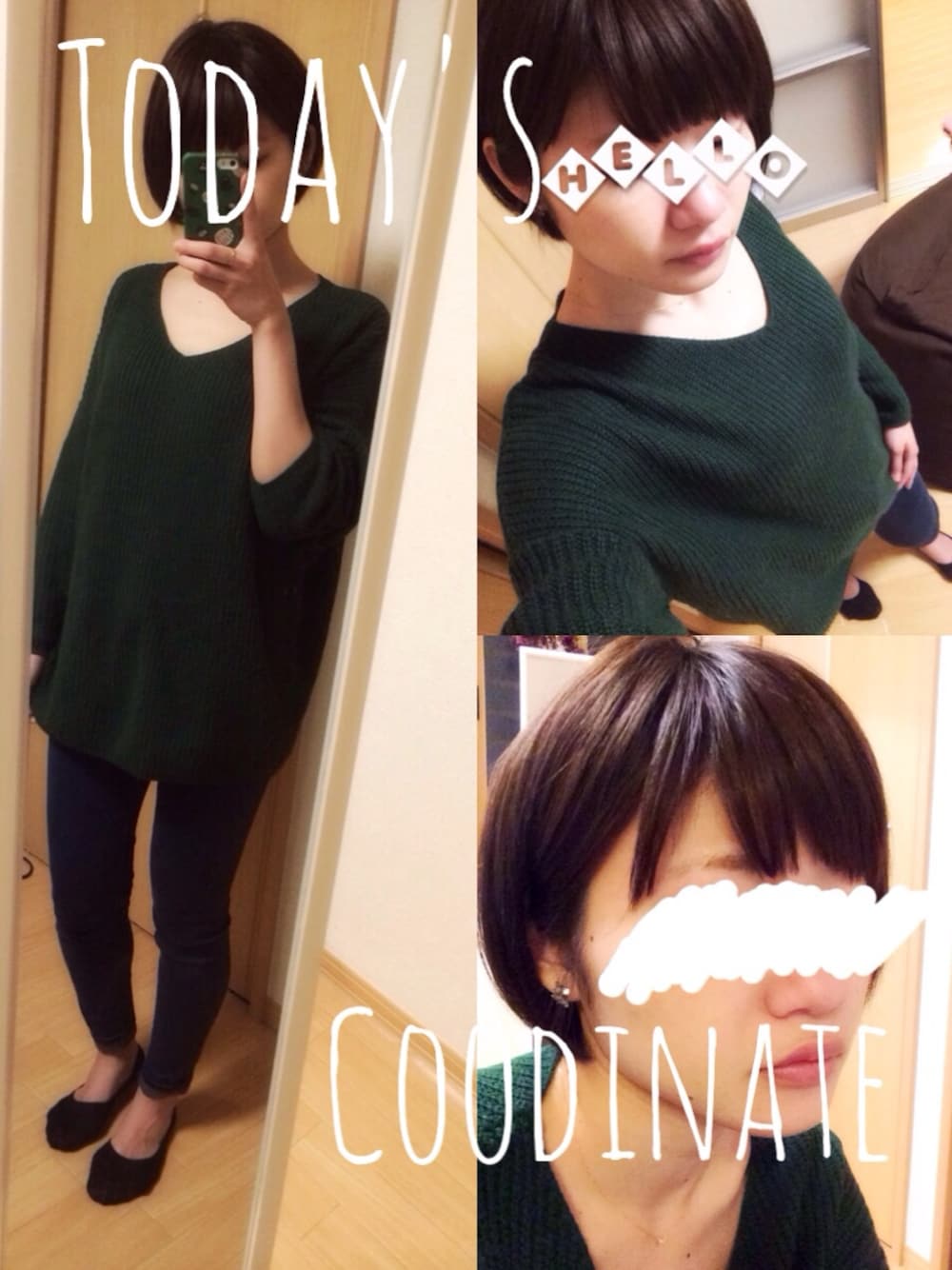 グリーンニット…titivate デニム…UNIQLO シンプルー サラっと着れる気候になりましたねー 前髪カットしました。