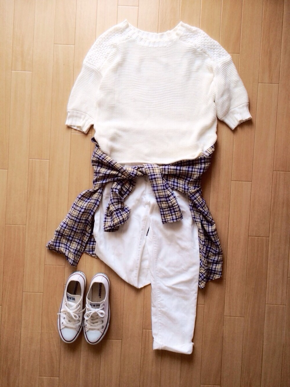オールプチプラ。 ニット…GU パンツ・シャツ…UNIQLO