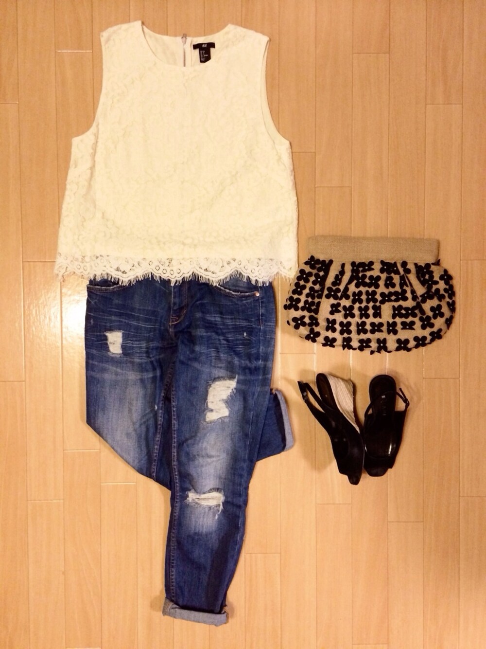 トップス…H&M サンダル…DIANA トップスは2900円のプチプラ♡ でもレースが綺麗で安っぽくみえない! 足元は今年なら白の靴下合わせてもいいかもしれないですね(^^)
