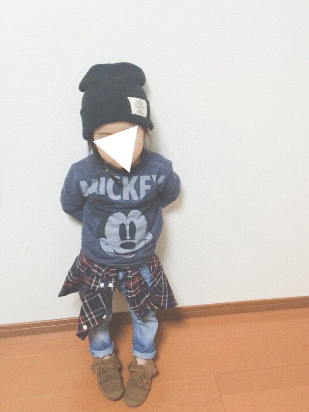 今日はスピンズで100円でゲットしたニット帽😂に弟のミッキーTを使ってラフなコーデでした😄🙌✨ シャツスタイル祭参加させていただきます💓 見ていただきありがとうございます♡