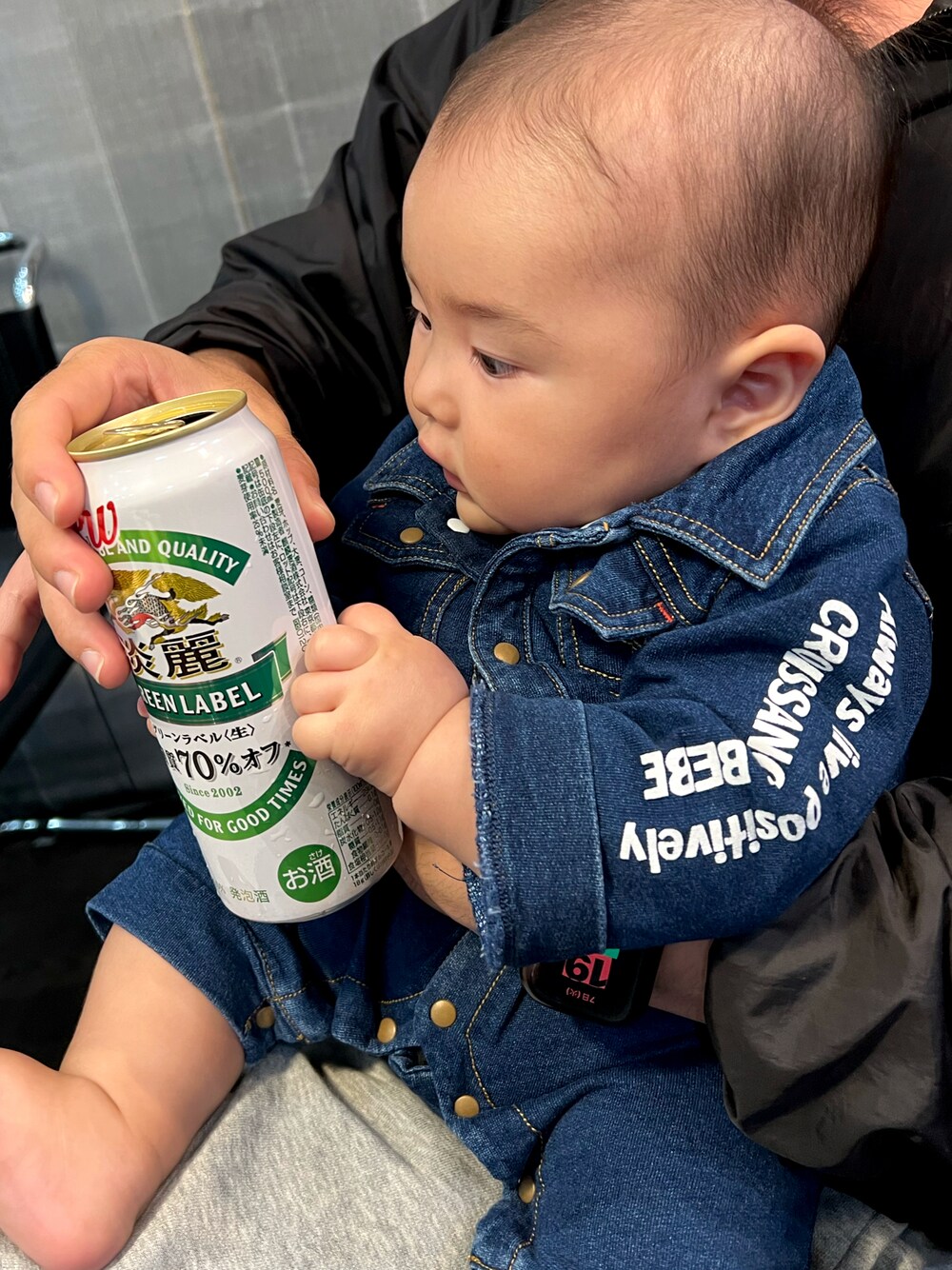 パパのビール🍺に興味津々😂