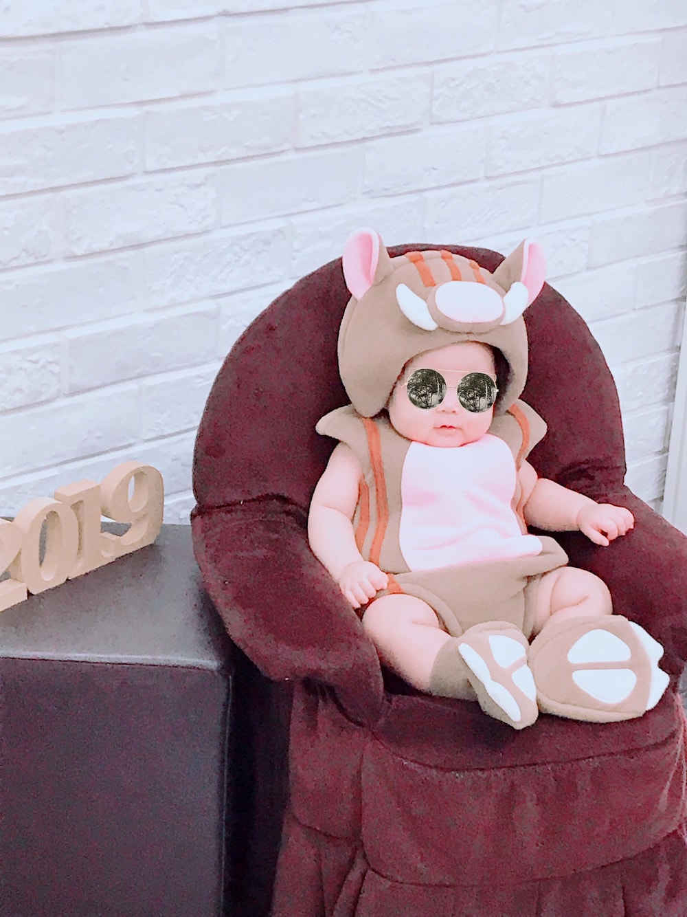 100日記念日🖤 産まれて100日に記念日に撮影📷 ドレスも着物も着たよ この、いのししちゃんが1番似合っていたね プロに撮影してもらったけれど、全然笑わない!! 平成最後は、いのしし☆ いとちゃんは、あれよあれよで お疲れでした! 素敵な記念になりました♪