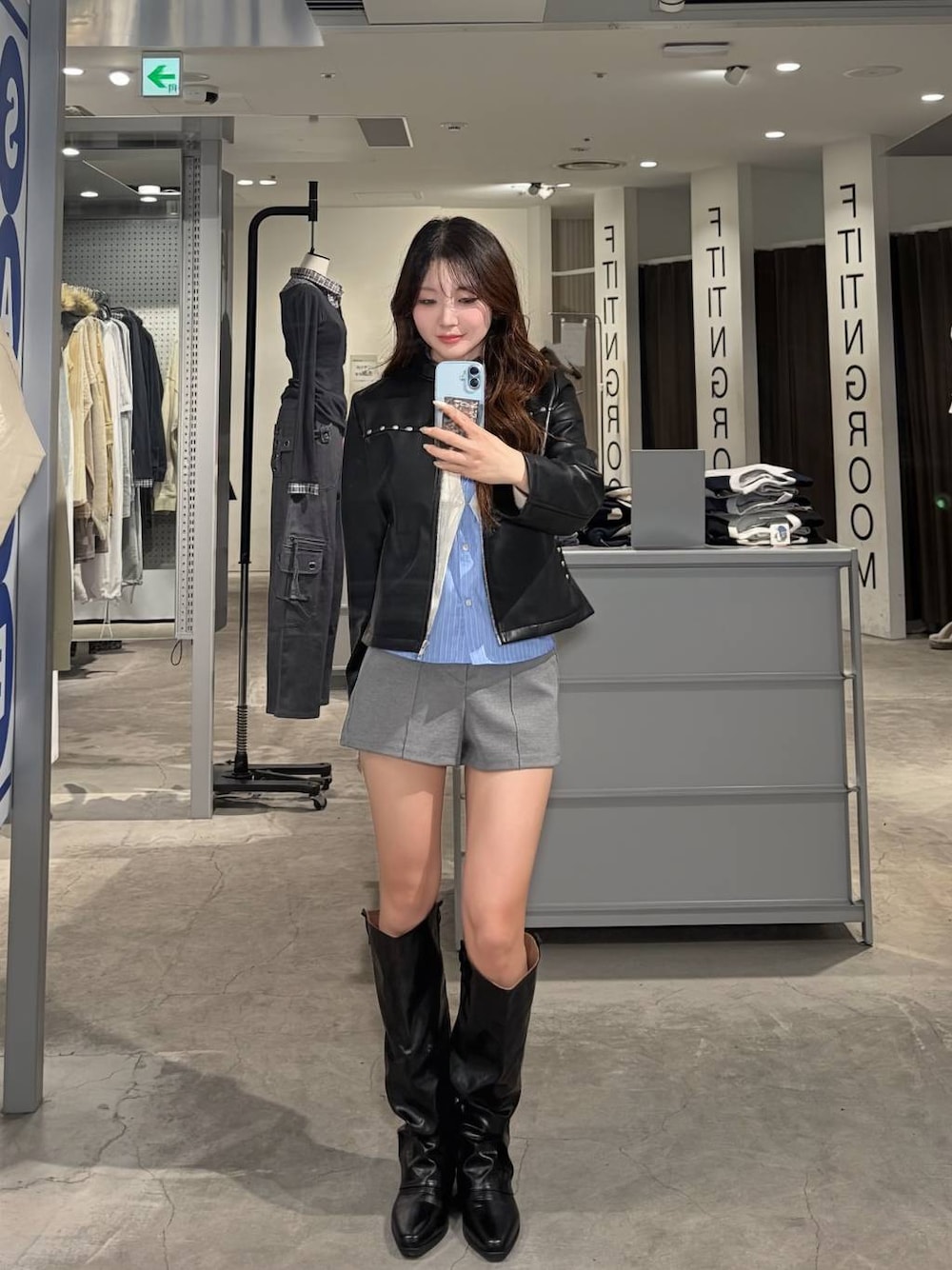 ⭐各アイテムのおすすめポイント  ̄ ̄ ̄ ̄ ̄ ̄ ̄ ̄ ̄ ̄ ̄ ̄ ̄ ̄ ̄ ̄ ̄ 【トップス】 スタッツが可愛いレザーJK☆ インナーはレイヤードトップス‼︎ レザーJKとレザーブーツの相性良すぎる‼︎ 【ボトムス】 シンプルショートパンツ‼︎ ストレッチ効いてて履きやすい〜