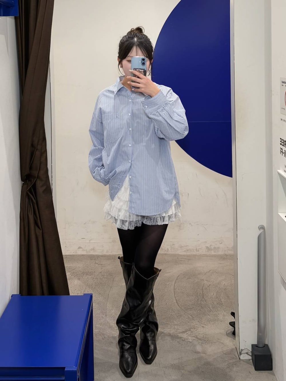 ⭐各アイテムのおすすめポイント  ̄ ̄ ̄ ̄ ̄ ̄ ̄ ̄ ̄ ̄ ̄ ̄ ̄ ̄ ̄ ̄ ̄ 【トップス】 ストライプシャツ👚 胸元のAロゴがワンポイントでかわいい〜 ボタン前部空けて、羽織としても使えちゃう優れもの‼︎ 【ボトムス】 ウエストがゴムで、インナー付きだからめちゃくちゃ履きやすい☆
