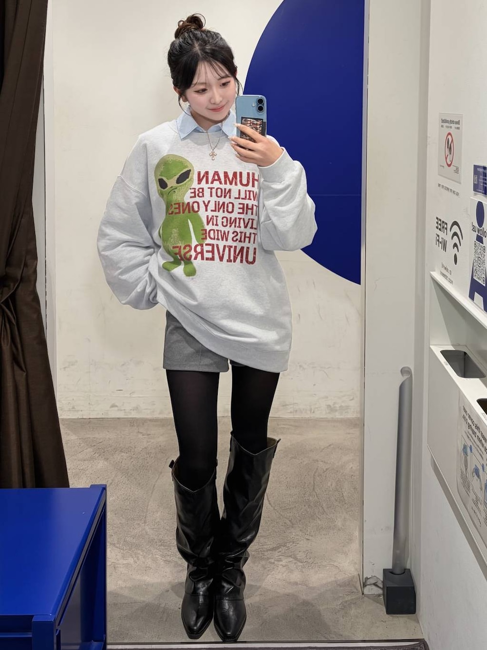 ⭐各アイテムのおすすめポイント  ̄ ̄ ̄ ̄ ̄ ̄ ̄ ̄ ̄ ̄ ̄ ̄ ̄ ̄ ̄ ̄ ̄ 【トップス】 エイリアンスウェット👽 中にインナーでワイシャツを着てるのがポイント‼︎ サイズはLだけどワンピース感覚で着てるよ! 【ボトムス】 シンプルショートパンツ🩳 ストレッチ効いてて履きやすい〜