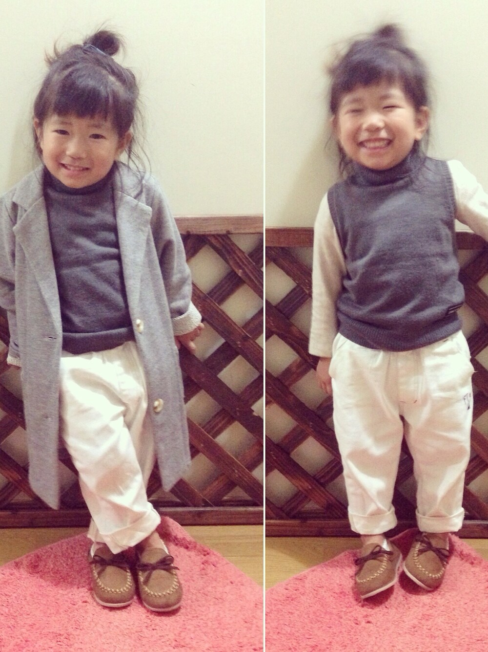 バースデーのロングカーデ 110 袖2回折ってちょーど🙆👏 futafutaのテーパードパンツ100 裾2回折ってちょーど🙆👏 パンツ試着せず買ったけど おもったとーりのかたち🙌💖