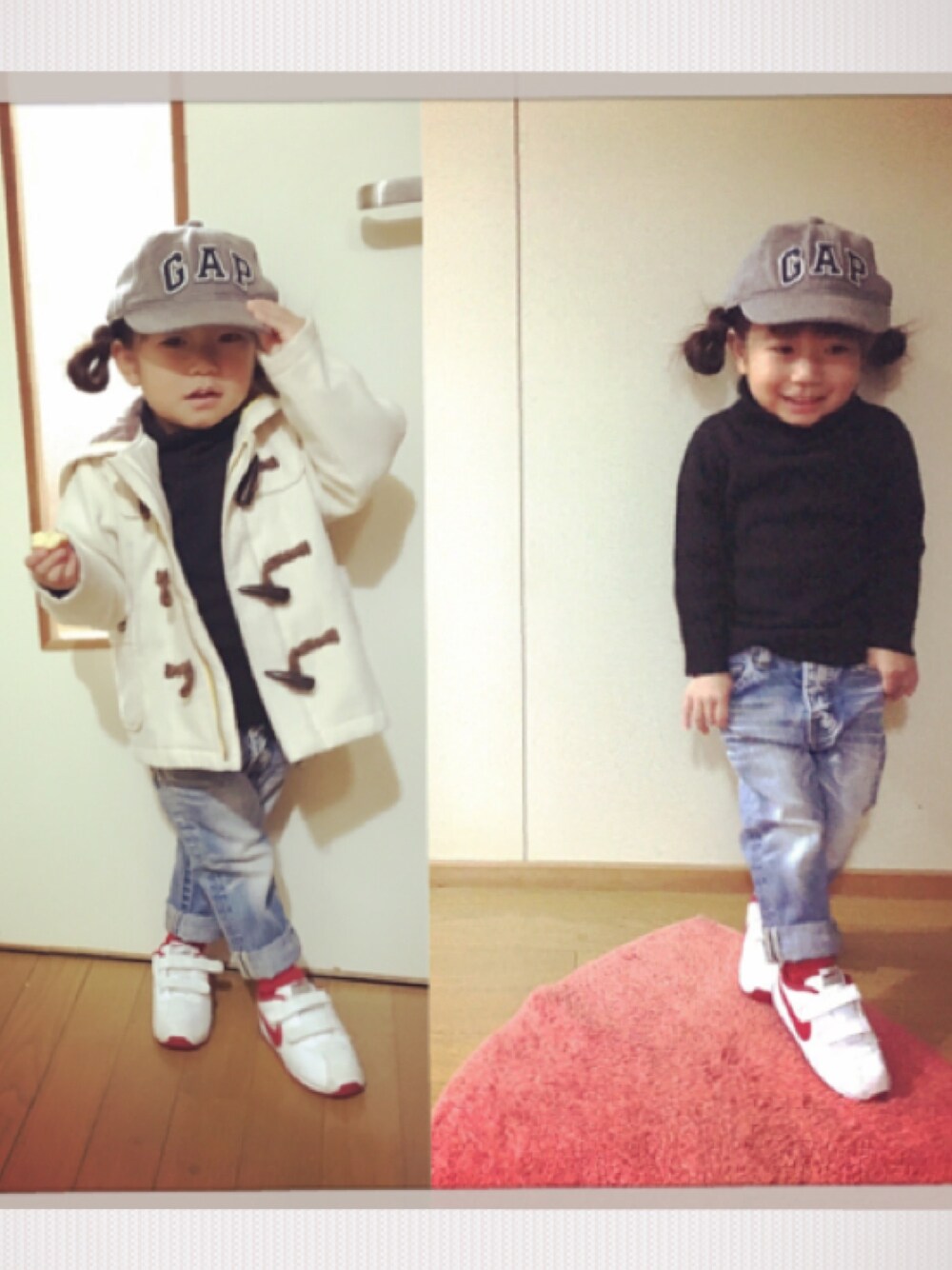 ボーイッシュコーデ🙌💕 一昨年のデザインのサニーのダッフルコート 去年もダッフル販売したけど このデザインが1番好きっ! 今日の服は90.95でジャストサイズ。 最近大きめをゆるっと着せてばかりだったけど タイトに着るのも可愛い〜🙈❤️ ロング丈のダッフルコートが欲しい。 今期どこかオススメ教えて下さい🙇