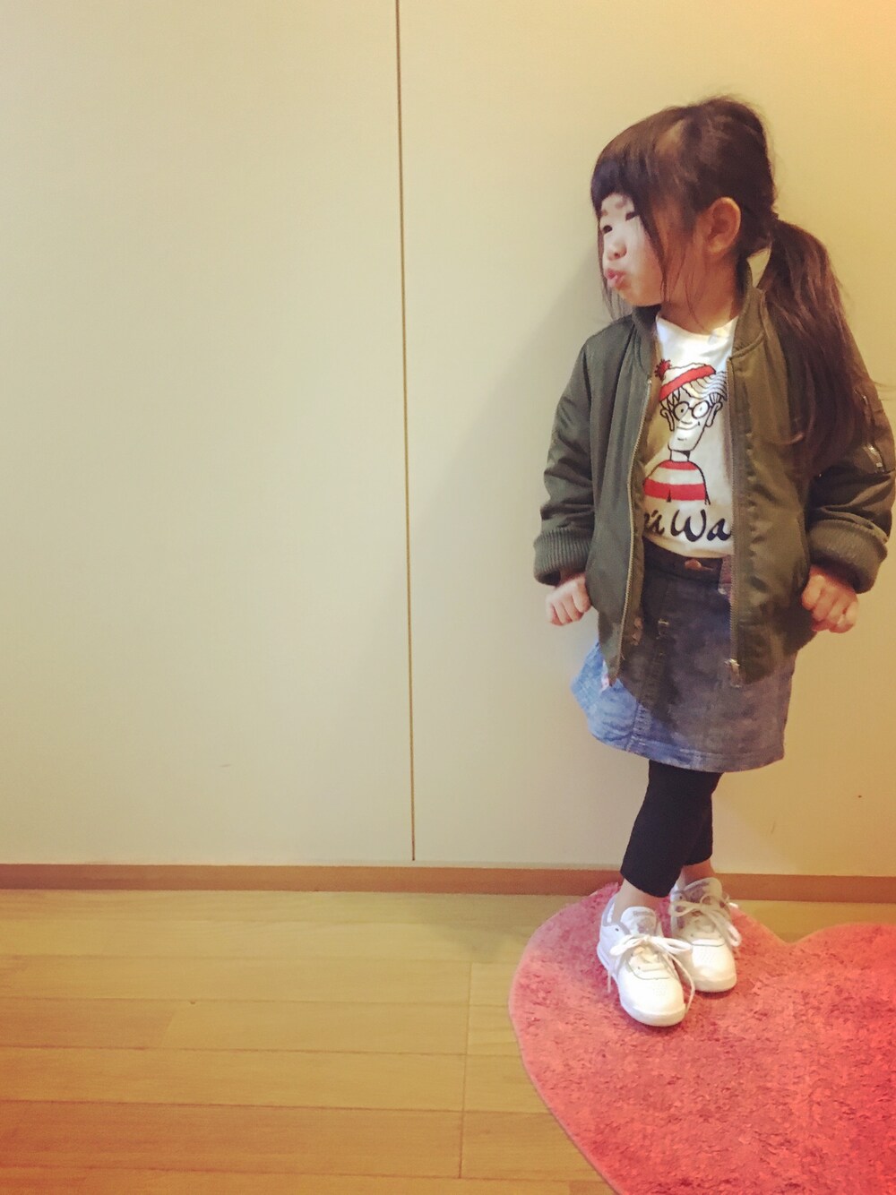 ma-1 100 袖1回折 UNIQLOのウォーリーシャツ 100 ワンピっぽく着せるため大きめ購入してた♫ geewhizのだまし絵スカート 90 reebockclassic 14 むちゃ可愛いです😊💕👟 今日も頑張りましょーー♫