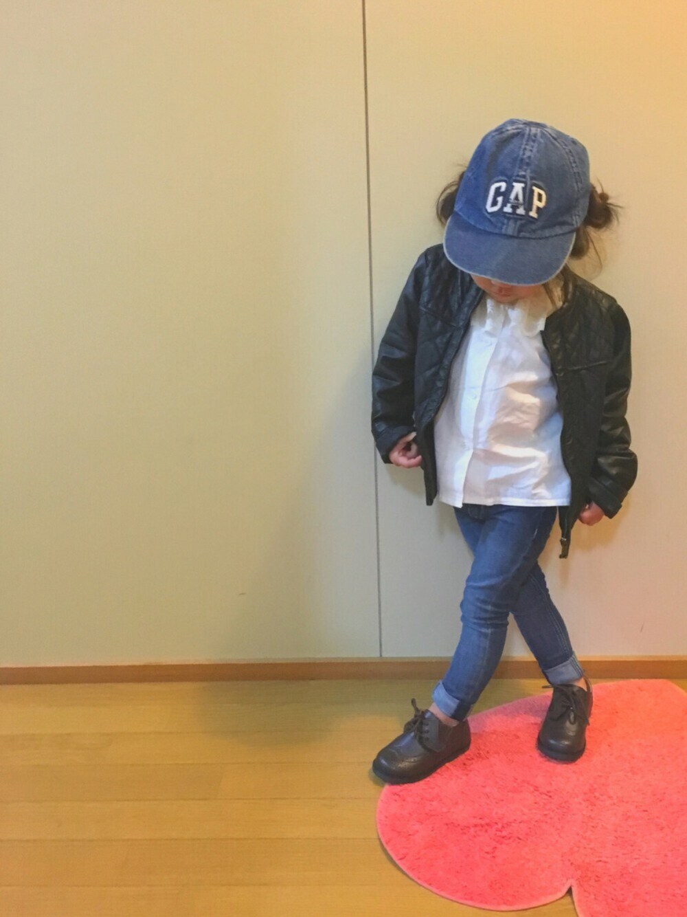 like👍save🙌follow👏ありがとうございます🙈💕 zaraライダースジャケット100 袖1回折 少しゆったり。来年にはピチッと着こなしてくれそうな予感😊💕 H&Mスーパースキニー92 裾2回折 こちらはピッチピチ😁👍✨✨ BREEZE ウィングチップシューズ 15㎝ サイズ感悩んで悩んで セールでget なぜか左足だけきついみたいで😭 16にしておけばよかった😫 十分靴下でカバーできたなぁー。 トップスのフリルブラウスはused ほんとはグリーンレーベルのブラウスが 欲しいけど ガマン〜😂 春は誘惑多いです♫
