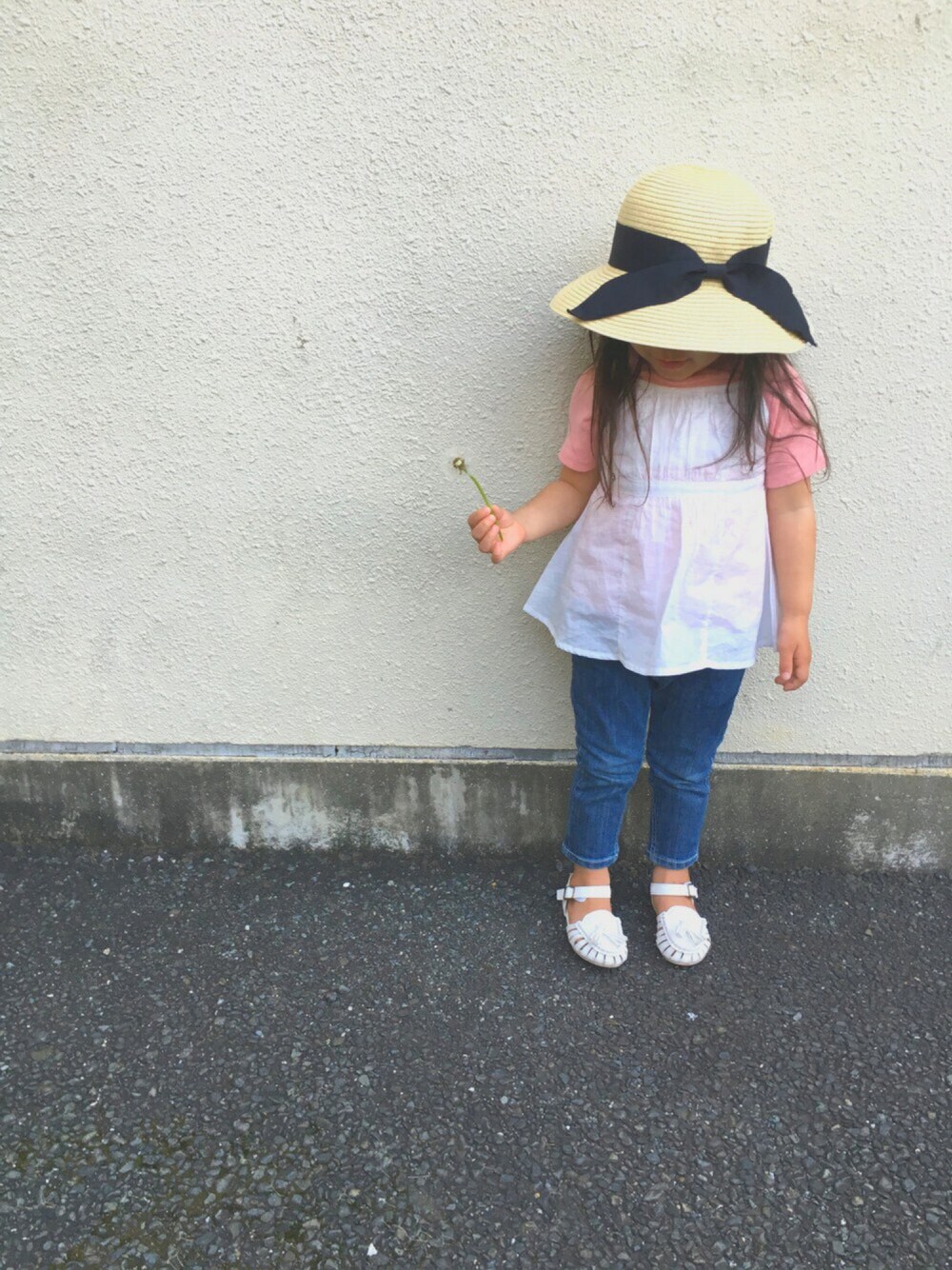 like👍save🙌follow👏thanks.💕 初夏ですねコーデww ハイネックトップス100 キャミソール90 デニム90 タッセルサンダル15 帽子52 折り畳みハット欲しくて 店舗にて試着。 サイズ感大きめに感じました〜 でも夏には4歳になる娘 さすがに50はなぁと思い ぶかぶかだけど52に😅 本人も飛んじゃう〜。 と自覚はあるけど仕方ない😁 でもめちゃ可愛いし便利です♫ サンダルは悩んで悩んで白! やっぱり茶色も可愛い。 結局どっちも欲しい😭💕✨