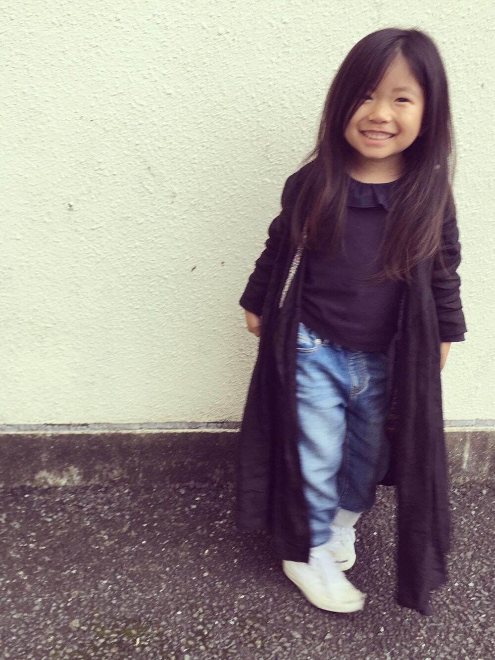 laetoile のカシュクールワンピース♡ 可愛すぎます🙏❤️ そろそろ秋な感じ〜w outer110 tops100 pants100 shoes16 100を着だした娘ですが ボトムスはまだまだゆるゆるーー😫