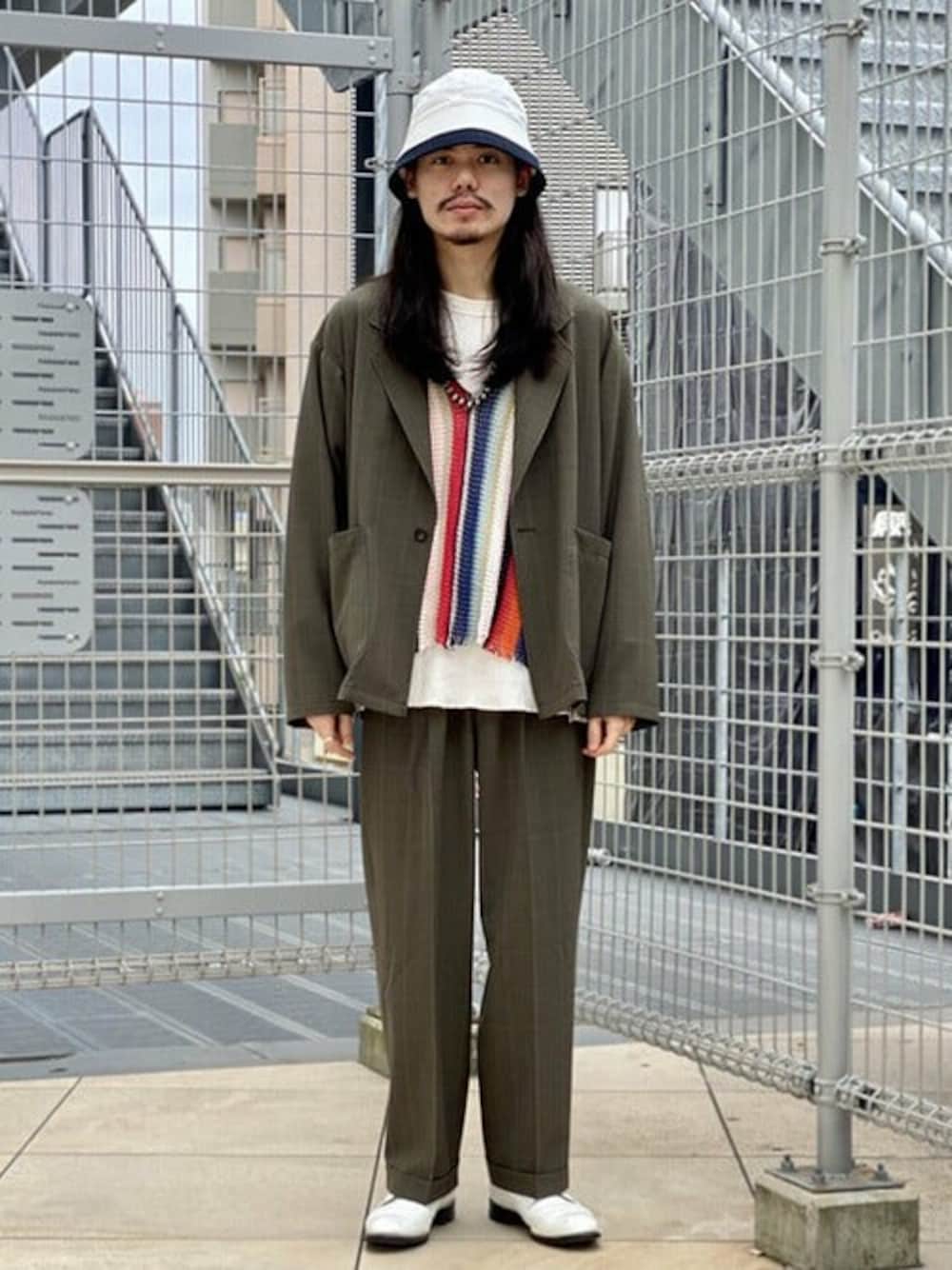 セットアップで合わせました。インナーを明るくすることでラフな印象になります。