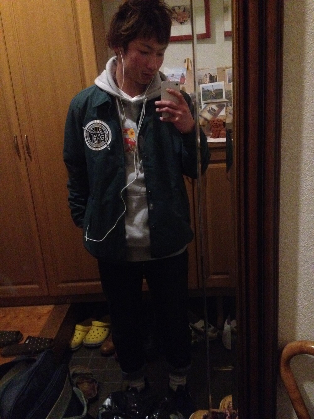 正月にセールで買ったラージのコーチジャケットを着てのコーデ。 写真よりももっとよく決まってると自分では思う。笑 このコーチジャケットあったかいし内ポケット2個もあって機能的だからすごいお気に入り。ロゴだけゴリラじゃないのが残念。 一応ジーパンロールアップして白靴下見せてますがだらしなくなっちゃってますね。反省。 明日もまた更新できると良いな。