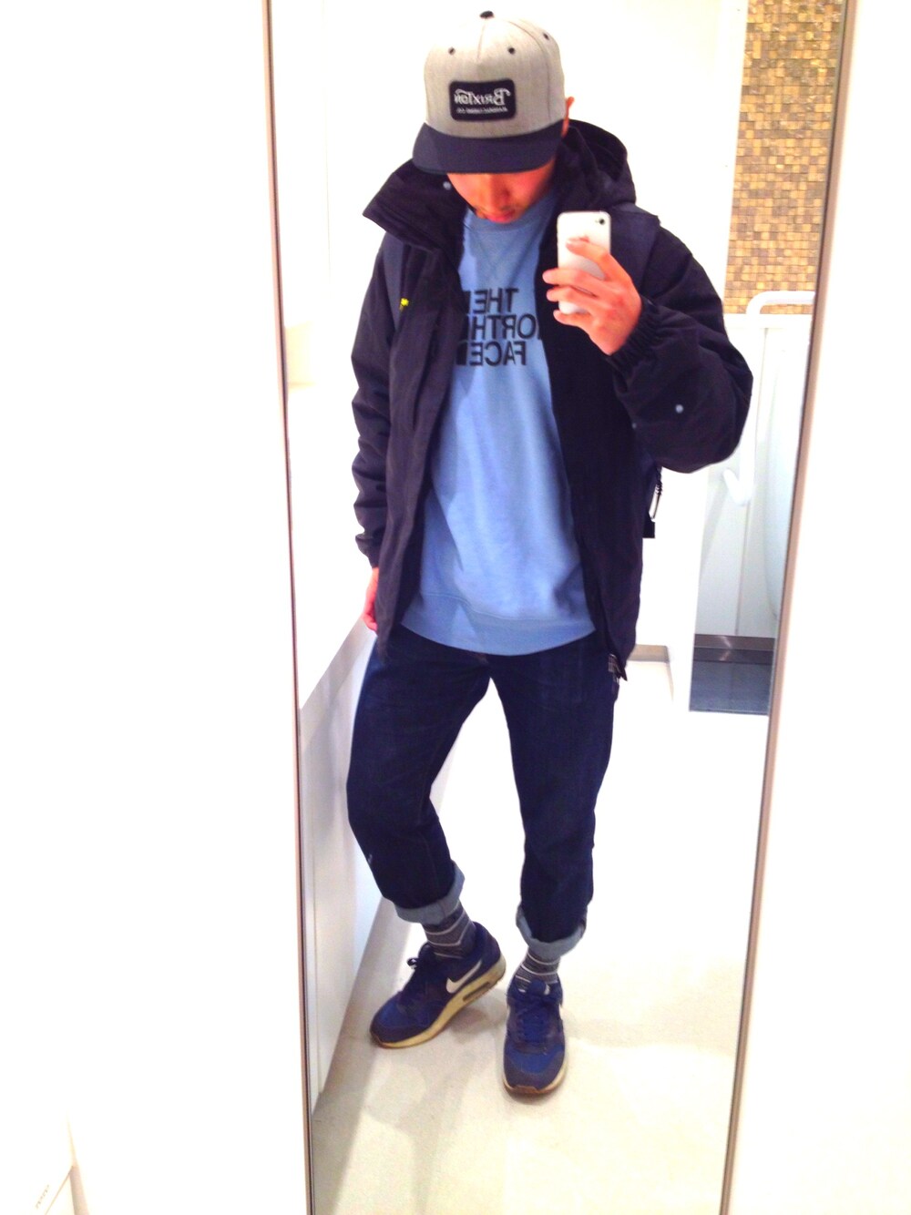 久しぶりの更新ですね。 更新したいんですけど、鏡がなくてですね笑 大学のトイレでパシャリ笑 前日友達の家に泊まったのでちょーラフな格好ですが、この水色のノースはなかなか被らない気がして好きで^_^