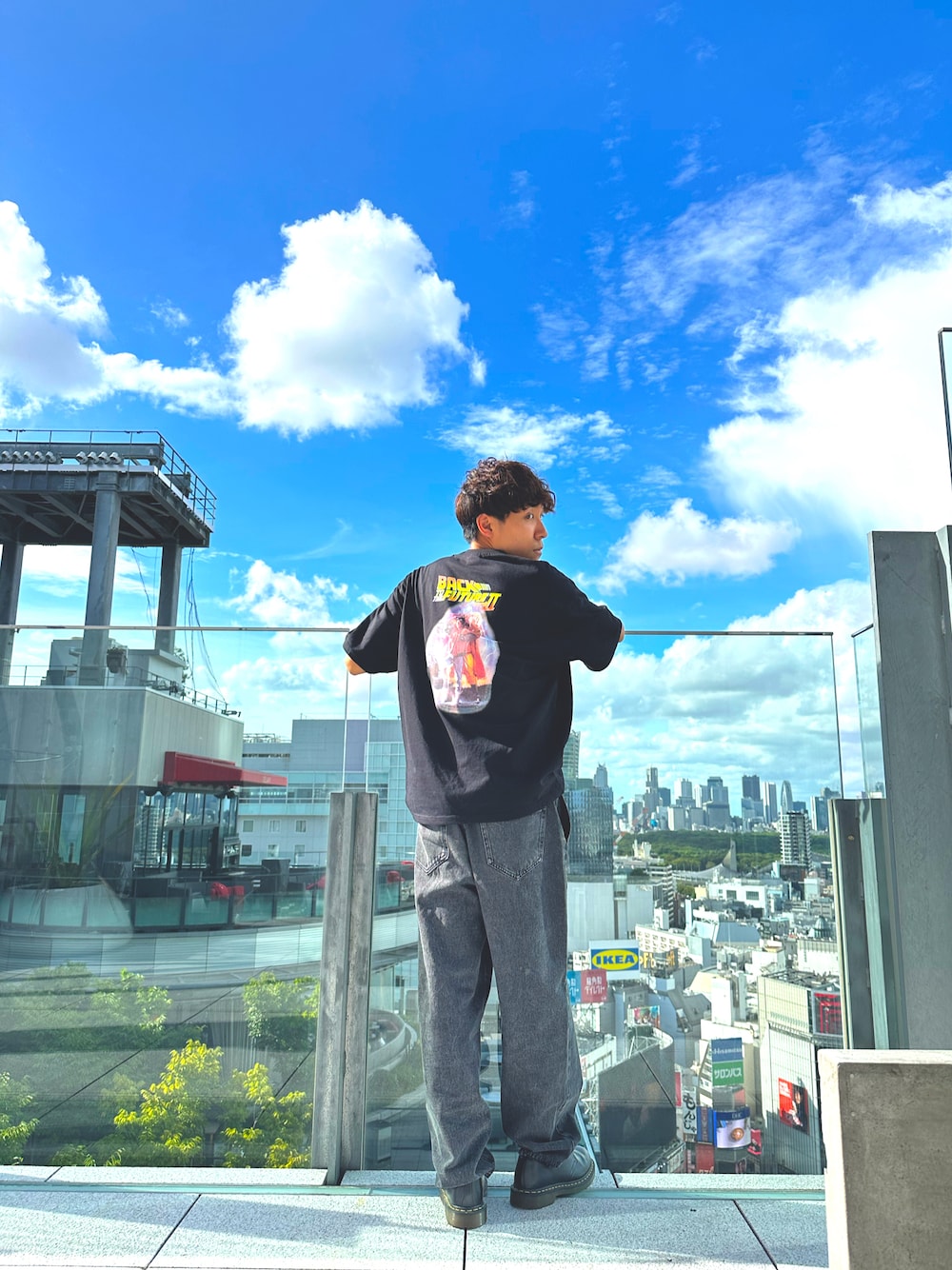やっと手に入れた映画ロゴT 流行りのブラックデニム I finally got my hands on black denim.