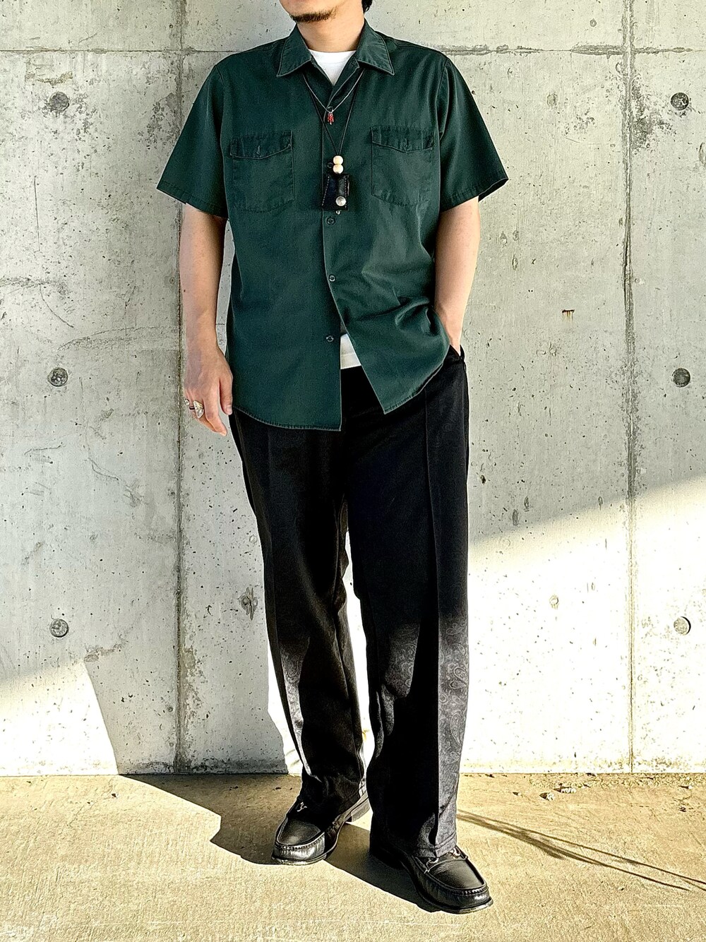 今日の服 . 全体的にラフな感じなので足元はローファーでキレイめにまとめてみました。 ボリュームのあるキャスケットを合わせても良さげです。 . . ●headgear #NEWERA #cap ●eyewear #few. #F5 #sunglasses ●tops #used #shirt #Lee ●pants #SUNNYSPORTS #trackpants #jersey #paisley ●shoes #BEAMS #loafers #bitloafers #accessory #ring #silver #mens #fashion #outfit #ootd #code 肩幅50弱・身幅60弱・裄丈83以上・UNIQLOサイズでXLが基準 n.240912