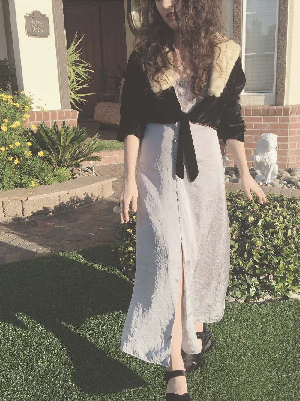 love love love pairing my true 1920s vintage velvet coat (with a fur color) with this top shop romantic vintage-inspired slip dress 💖💖💖 wish I could wear it everyday 😍😍😍😍🌹